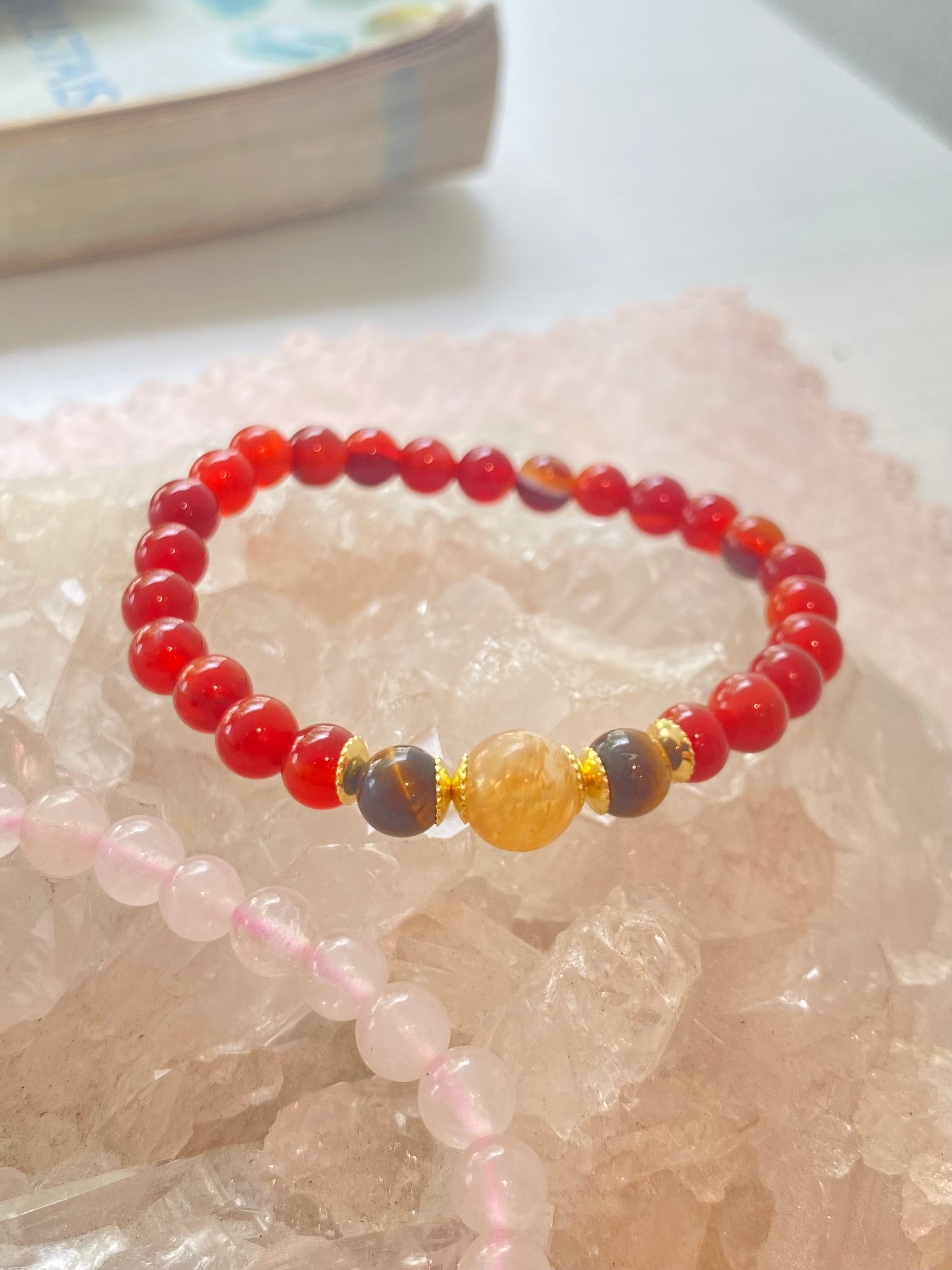 Cornalina, Olho de Tigre e Quartzo Rutilado #UnoCR