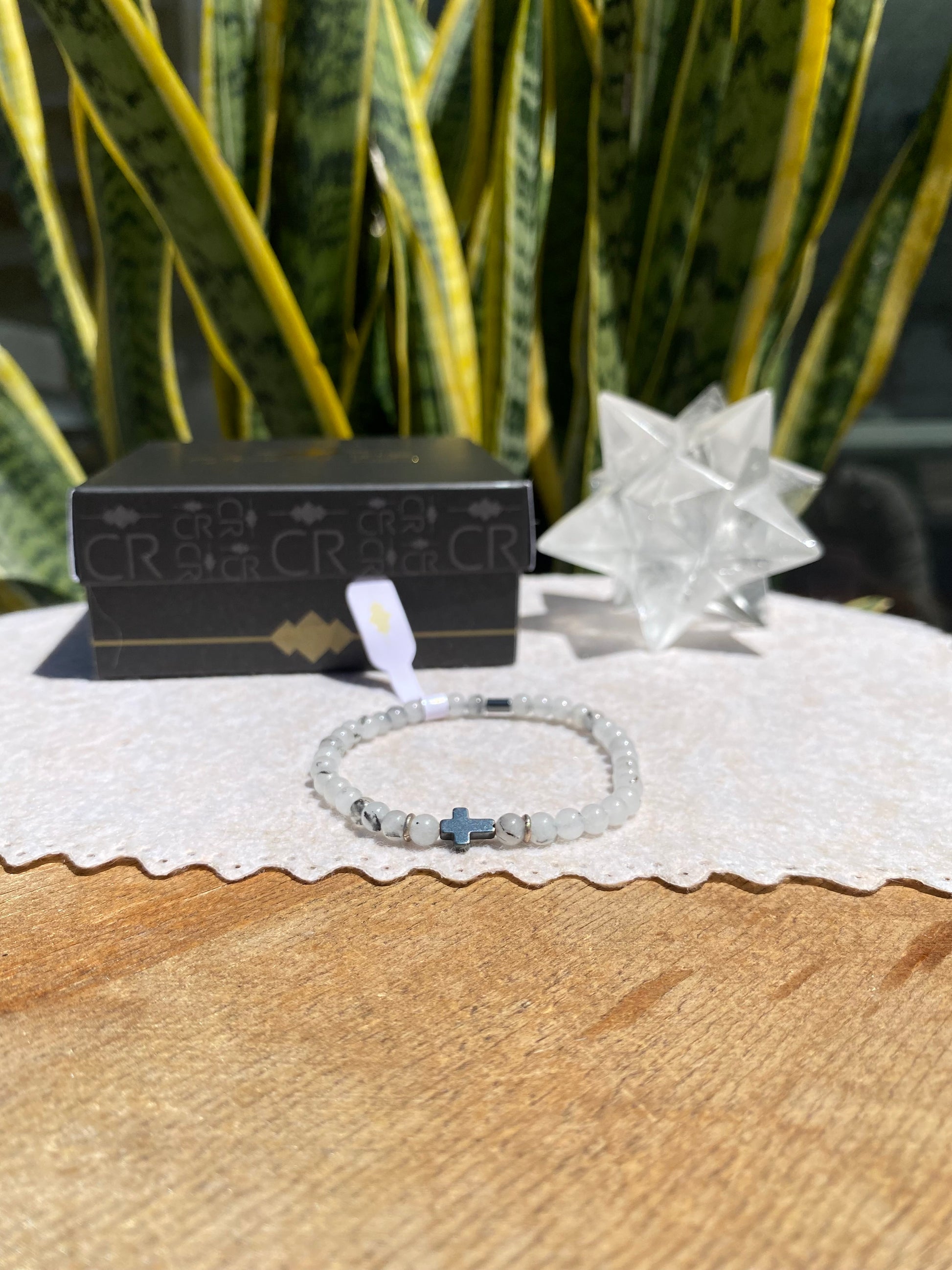 Joia Craw Rif Minimalista, feita à mão, com cristais Olho de Tigre e Cruz de Hematita.