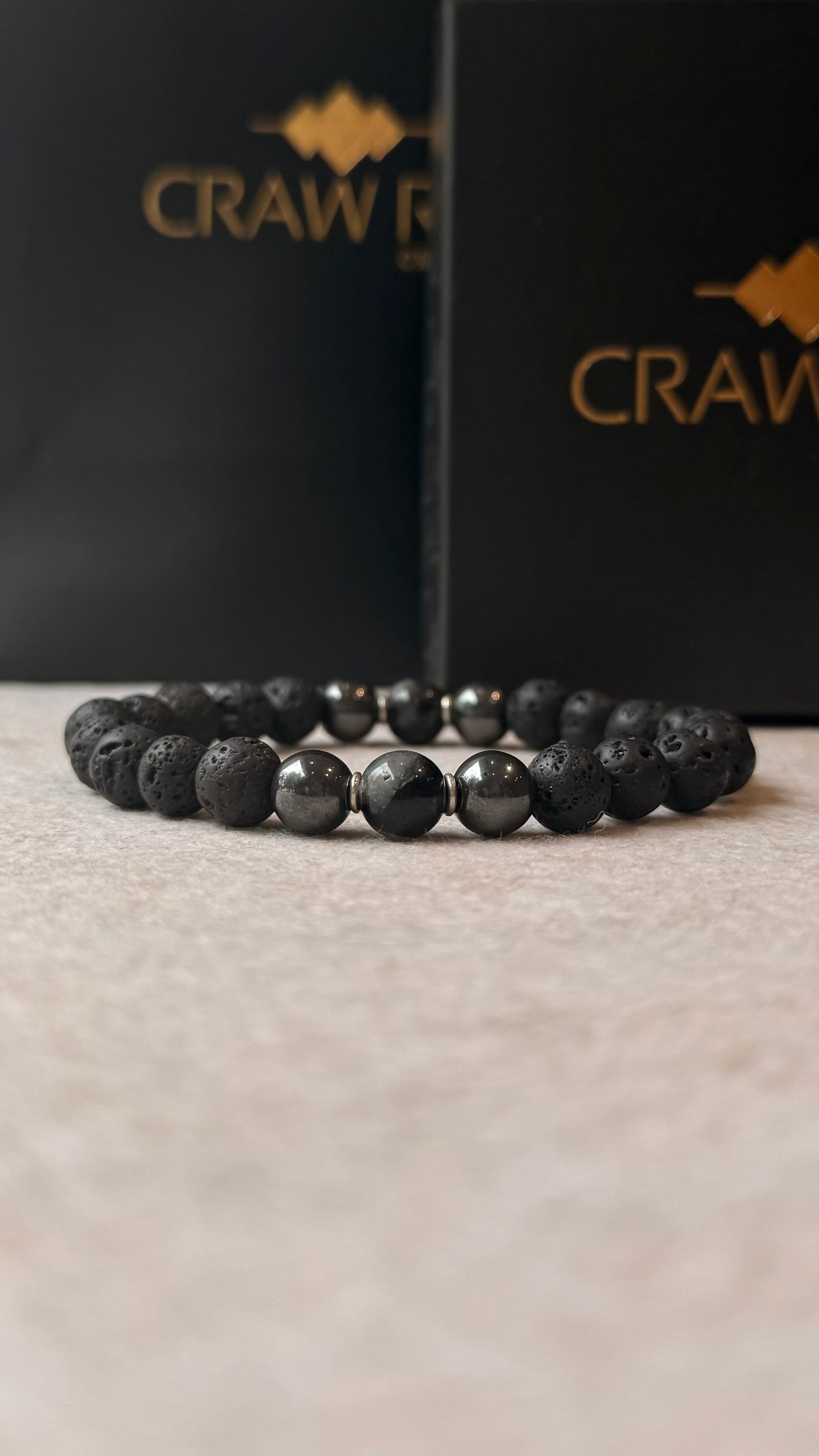 Lava Vulcânica, Hematita e Quartzo Turmalinado – Proteção, Coragem e Clareza (Prata 950) #AegisCR