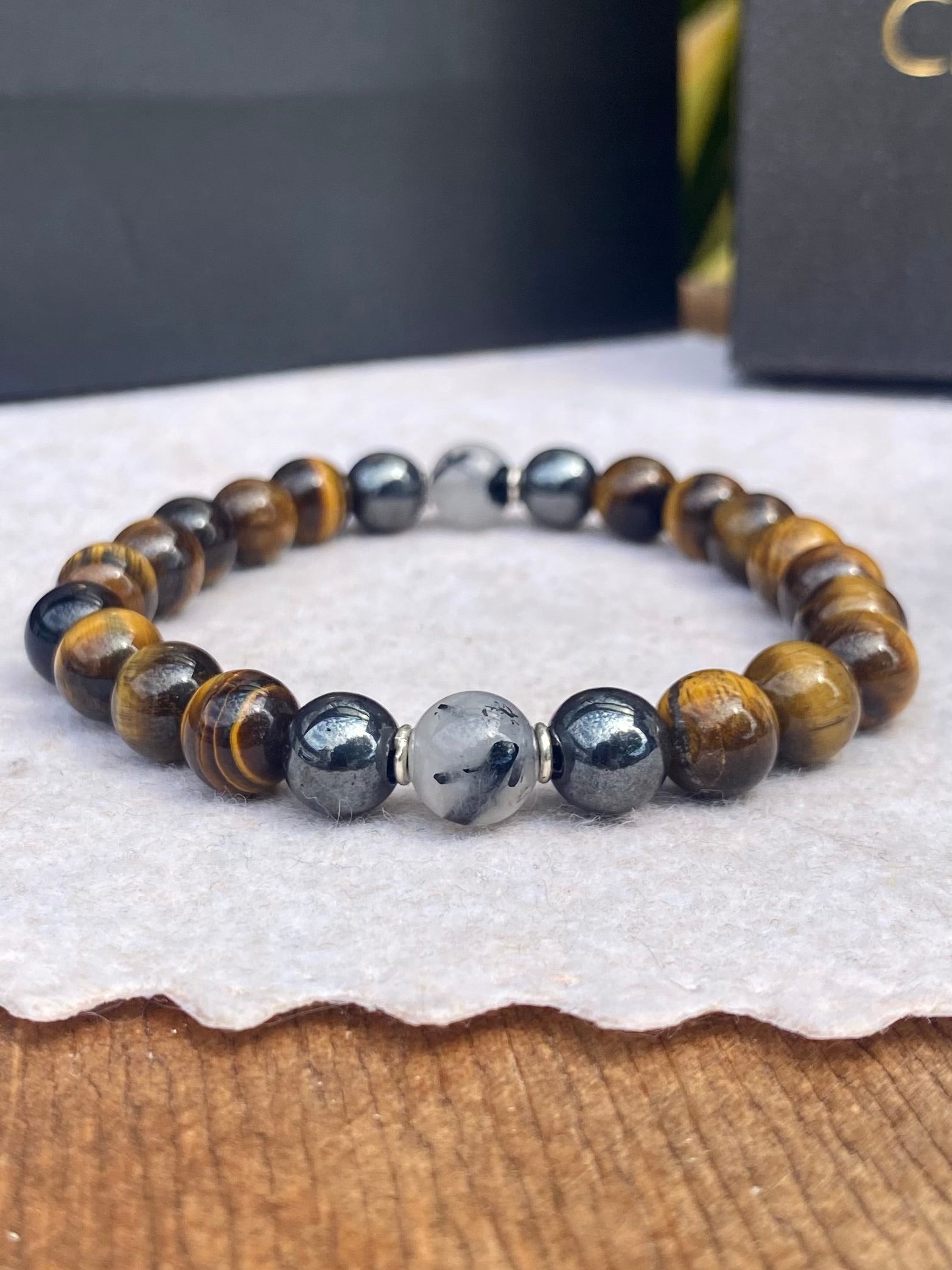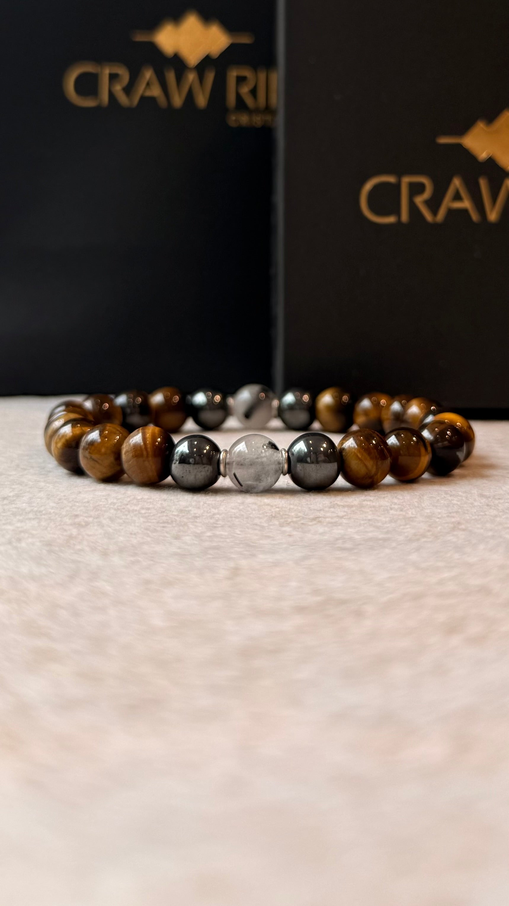 Olho de Tigre, Hematita e Quartzo Turmalinado – Proteção, Coragem e Clareza (Prata 950) #AegisCR