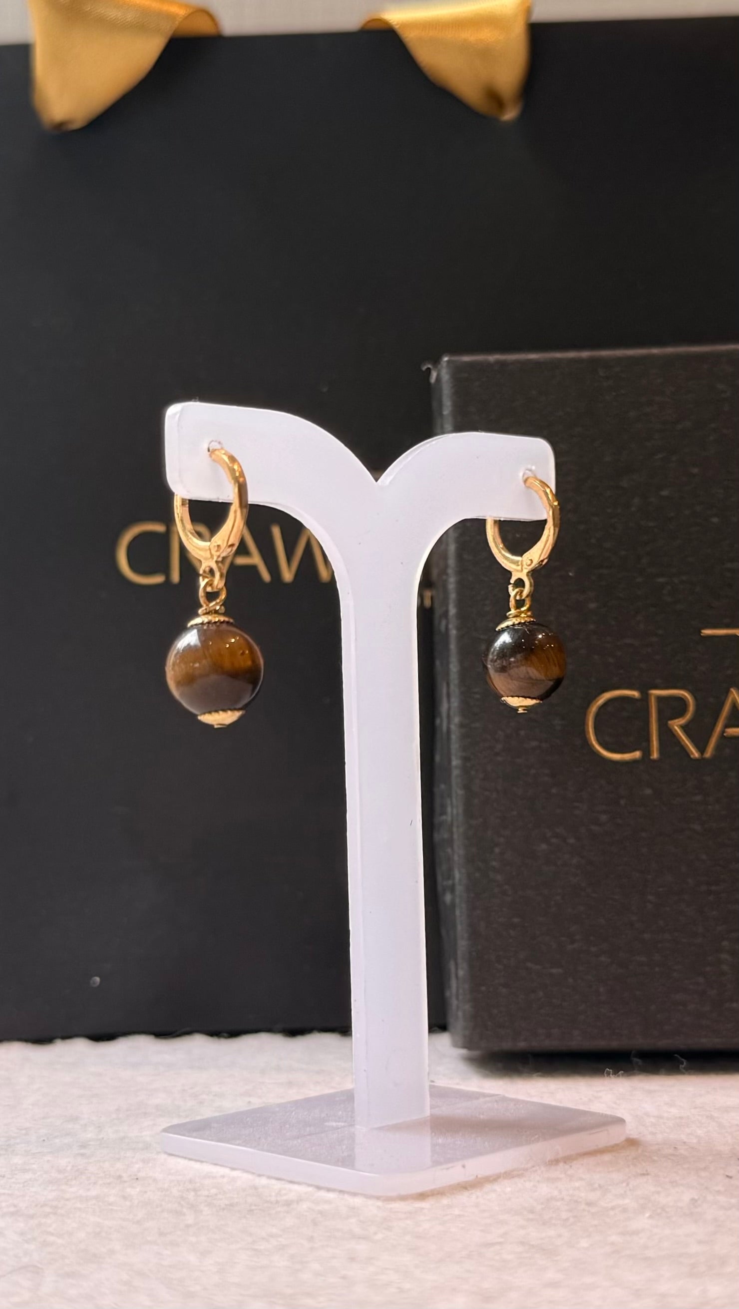 Brinco Uno feito à mão com o cristal Olho de Tigre.