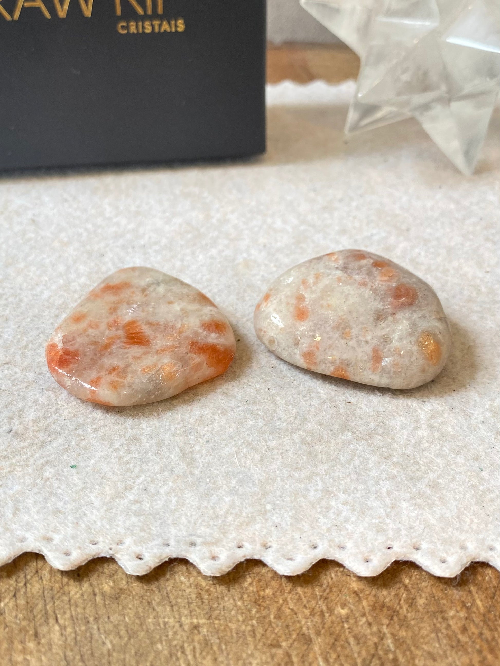 Formada principalmente por feldspato, a Pedra do Sol possui uma cor laranja-dourada característica, com reflexos metálicos que parecem brilhar à luz, representando sua forte energia solar e revitalizante.