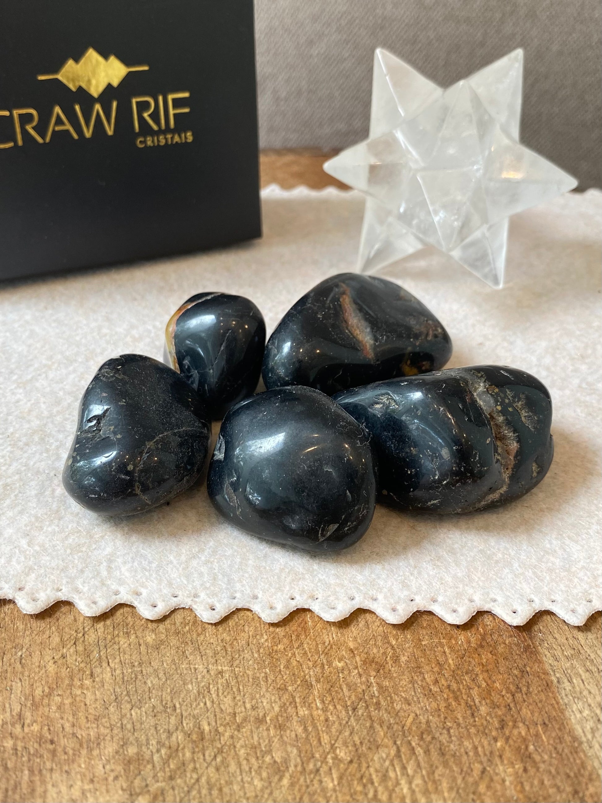 É uma variedade de calcedônia composta por dióxido de silício, com coloração escura que reflete sua capacidade de ancorar e proteger energeticamente.