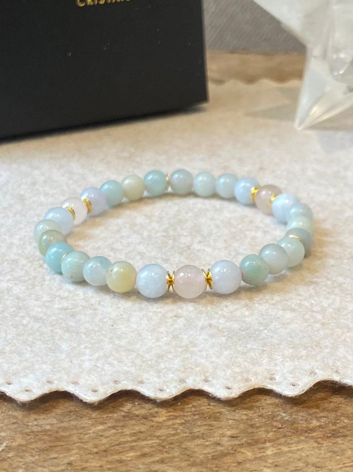 Formada por uma variação de berilo, sua tonalidade azul esverdeada reflete a tranquilidade e serenidade que ela transmite, sendo uma excelente aliada para quem busca equilíbrio emocional e mental.