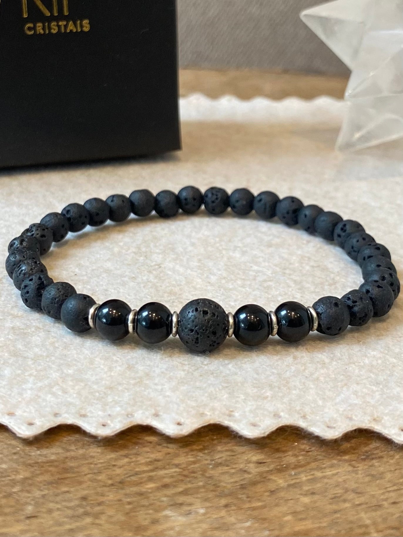 Sinta a Elegância e os benefícios Terapêuticos da Joia CR de Turmalina Negra & Lava Vulcânica ⠀