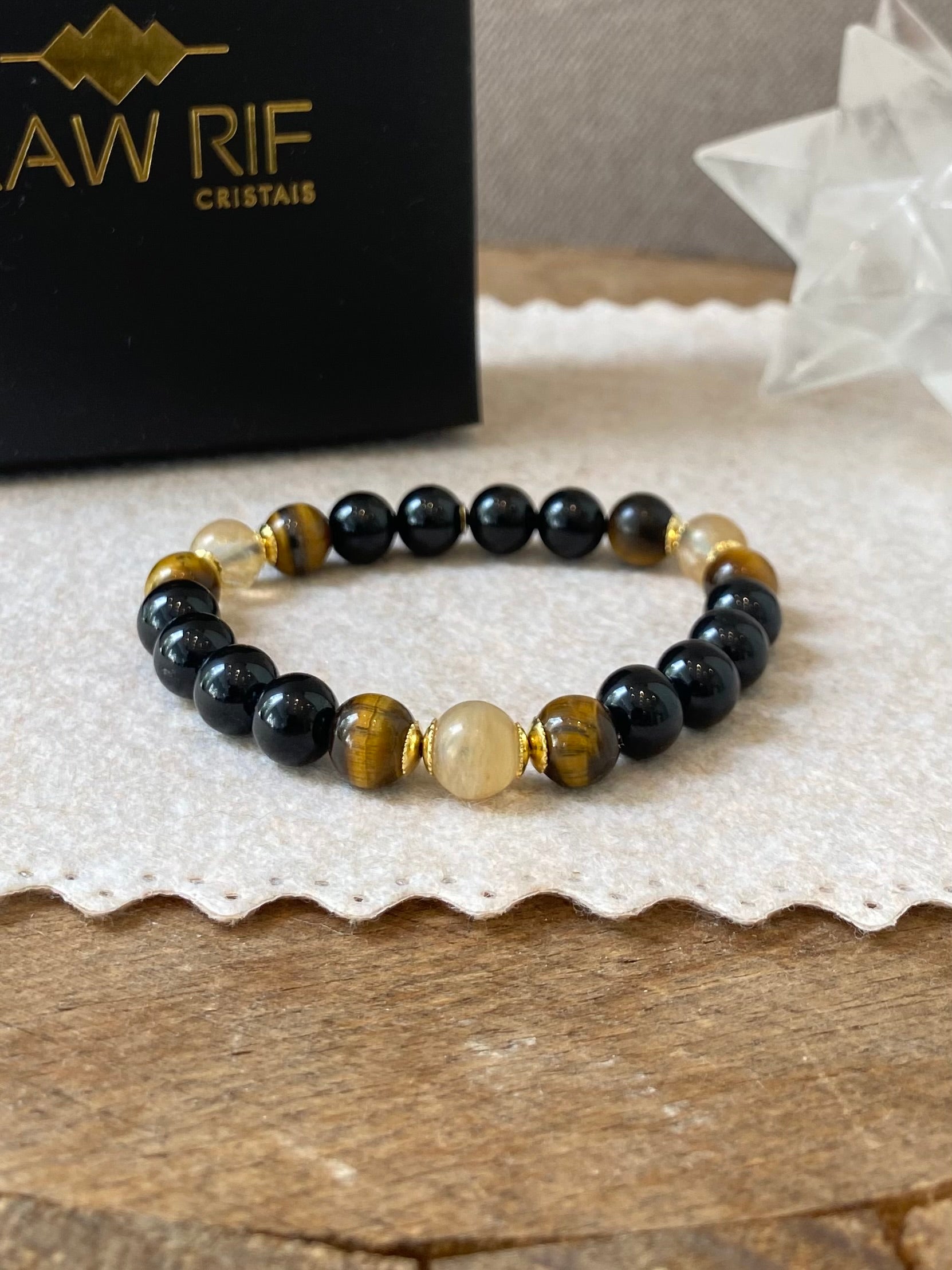 CR Moments | Turmalina Negra, Olho de Tigre e Quartzo Rutilado – Proteção, Clareza e Crescimento Espiritual (Banho Ouro 18K)